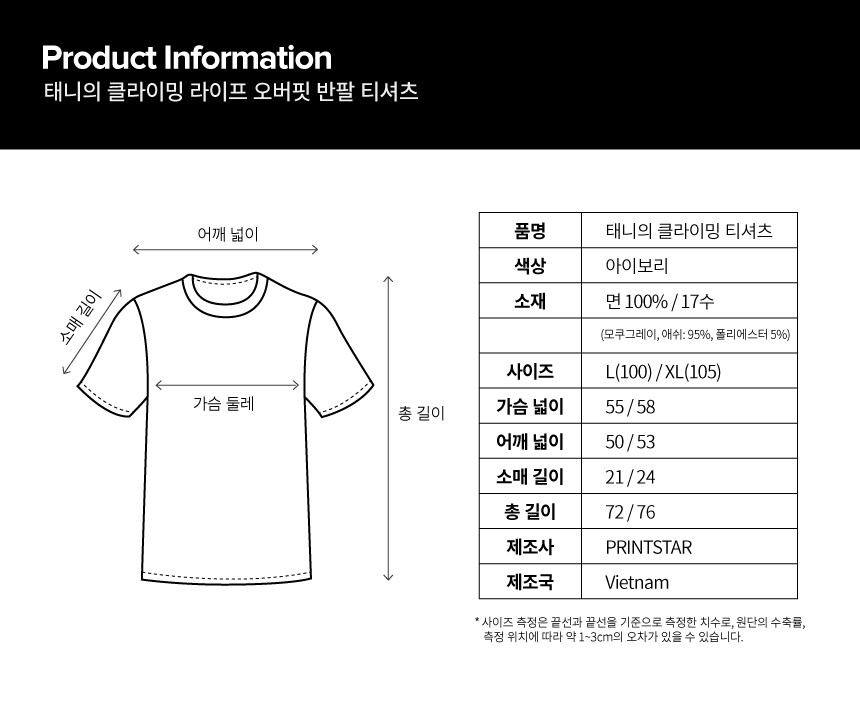 4. 프린팅 부분이 접히지 않도록 보관하시면 그래픽 손상 없이 더욱 오래 착용하실 수 있습니다.